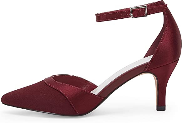 • ❤[Features]: Pointed Toe; Mid Heel; Ankle Strap Set With Buckle; Lightweight Padding. Timeless ankle straps and delicate satin coverage make you look more elegant and beautiful; soft inner lining and insole, you won't feel any pain even if you stand all day