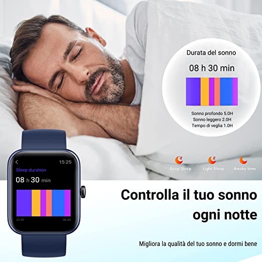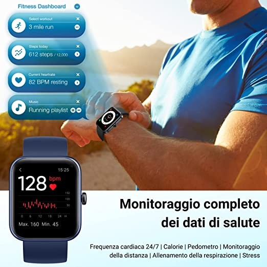 HOAIYO Smart Watch for Health and Fitness, Alexa Built-in, Heart Rate, Music, Sleep, Blood Oxygen Monitor, 5ATM Waterproof Swim Tracking, for iPhone Android Phones, Men's Women (Blue, 1.7 Inch)
